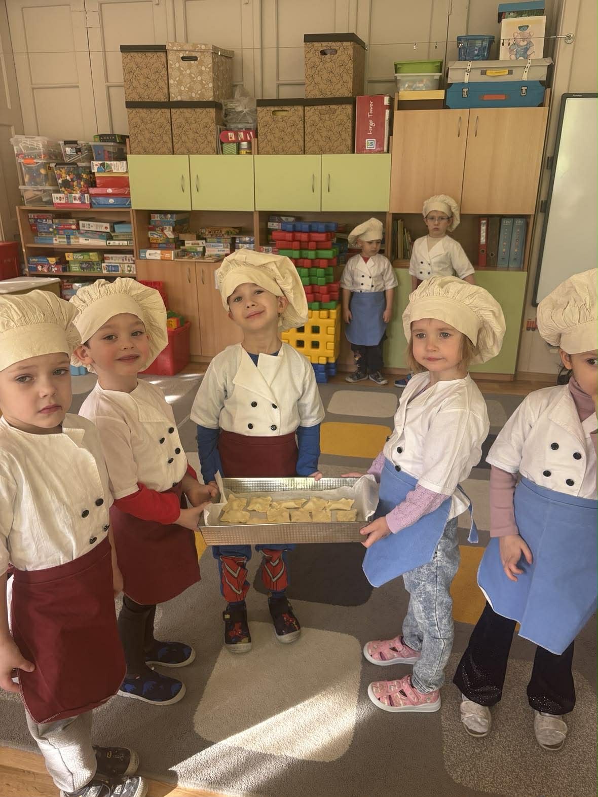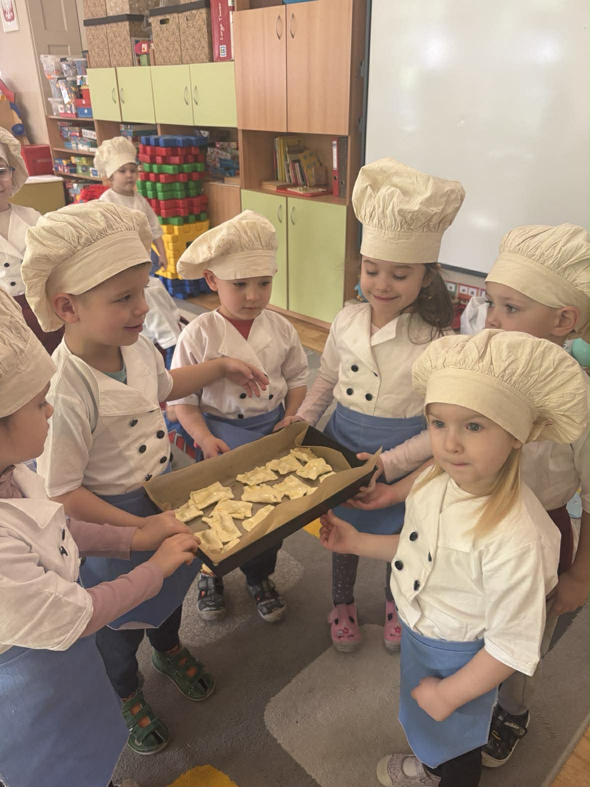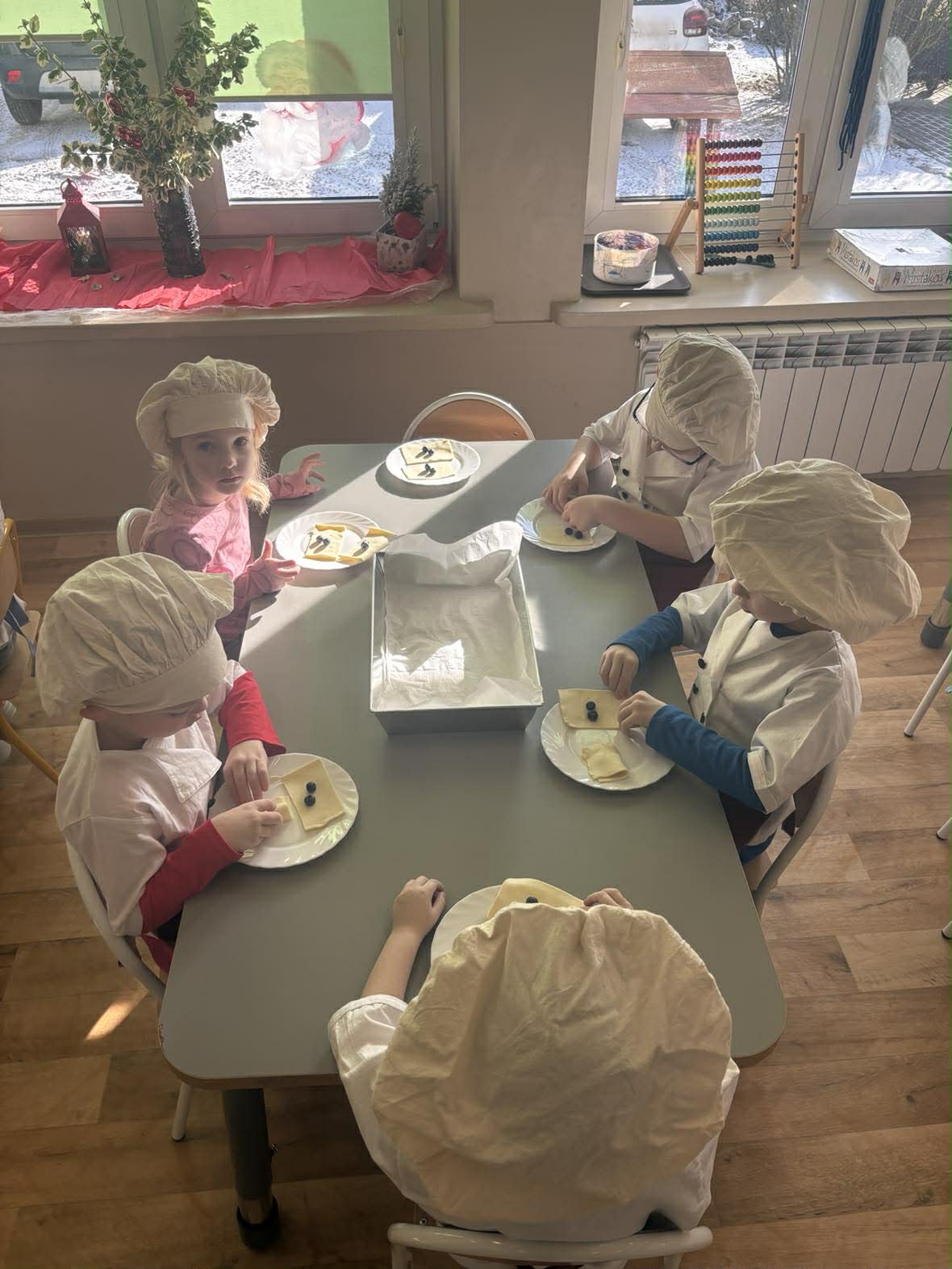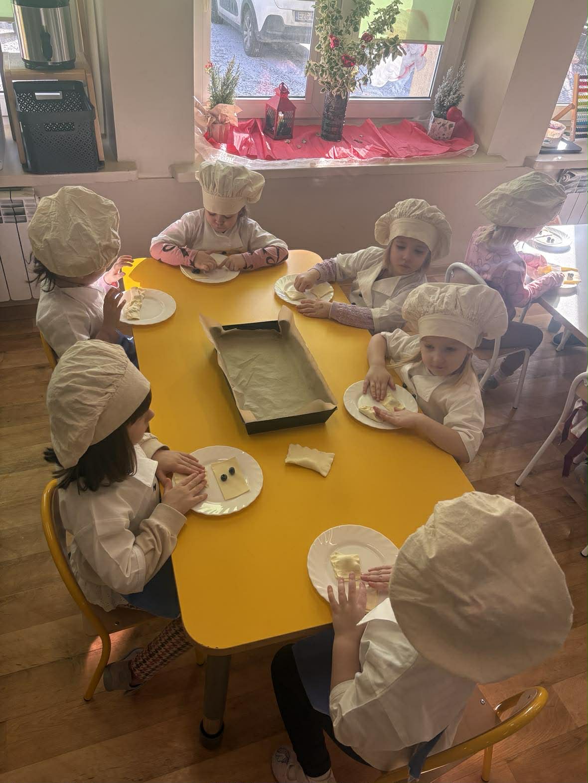 Wczoraj grupa II Motylki w ramach akcji „Zdrowo jemy, kolegom smakołyki szykujemy” przygotowała pyszne przekąski dla całego przedszkola. Zrobiły pyszne ciastka francuskie z borówkami.