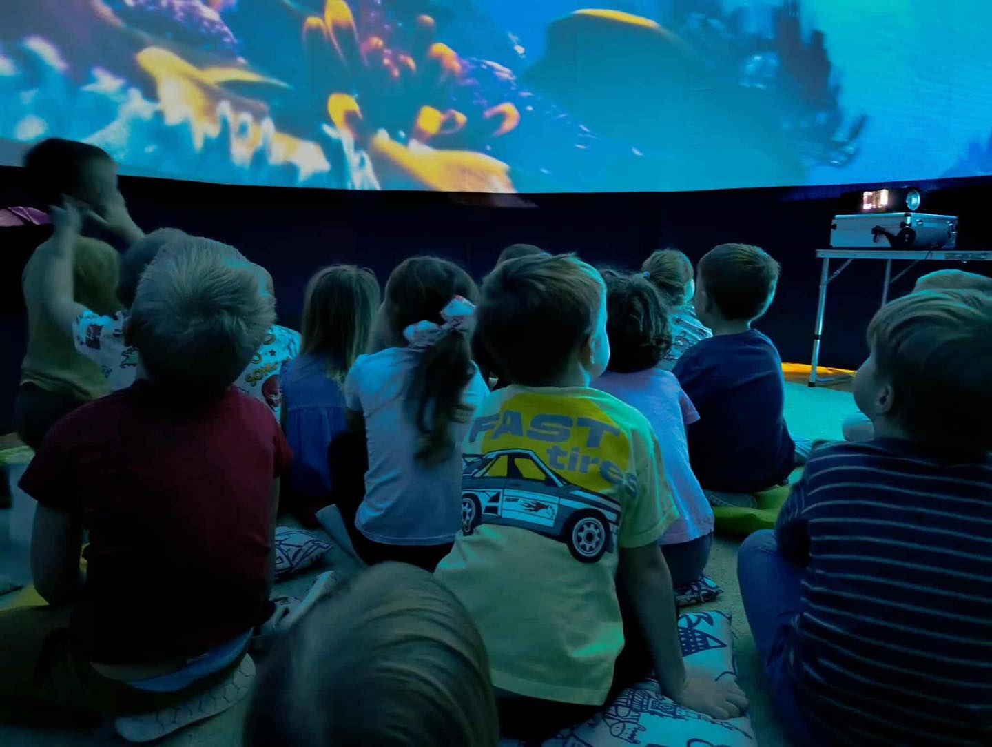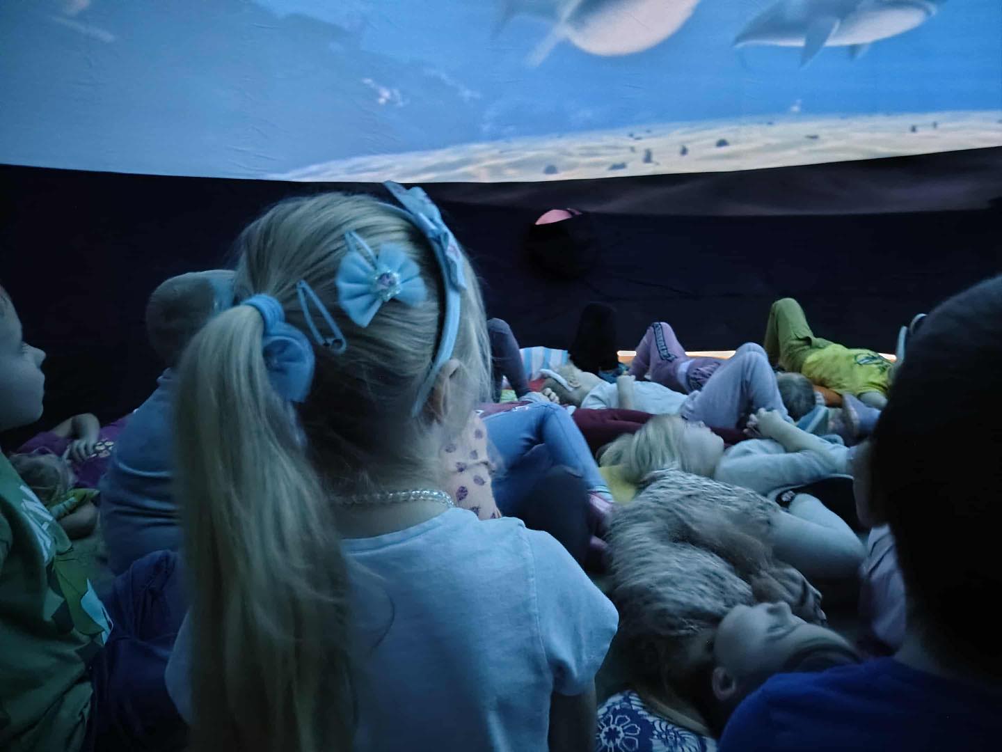Przedszkolaki z zachwytem oglądały film wyświetlany dookoła nich na gigantycznej, półkolistej ścianie. Dźwięki, kolory i ruch otaczały je z każdej strony, sprawiając, że wszyscy czuli się jak w środku magicznej opowieści.