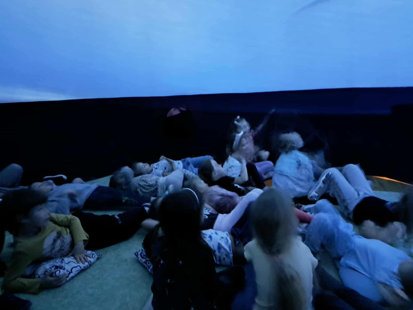 Dziś w jednej z sal naszego przedszkola wyrosła… ogromna kopuła kinowa, a dzieci przeniosły się w niezwykły świat pod jej sferycznym sklepieniem!