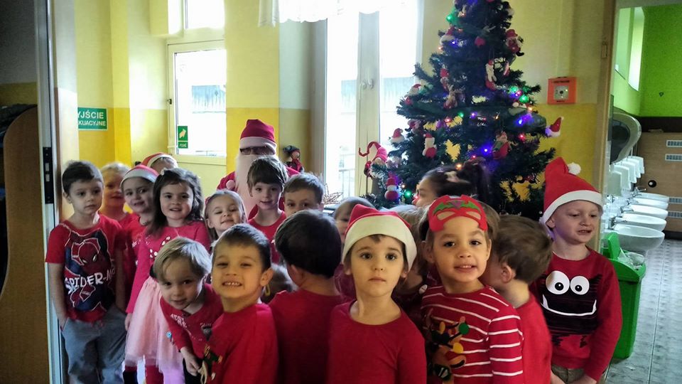 Dzisiejszy dzień obfitował w wiele atrakcji. Mikołaj witał i częstował cukierkami przedszkolaków, a potem był koncert świąteczny. Dzieci z grupy V uczestniczyły w "Biegu z Mikołajem" zorganizowanym w Parku Miejskim, a dzieci z grupy IV ubierały choinkę w Alei Bożonarodzeniowej oraz podziwiały świąteczne dekoracje.