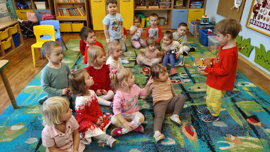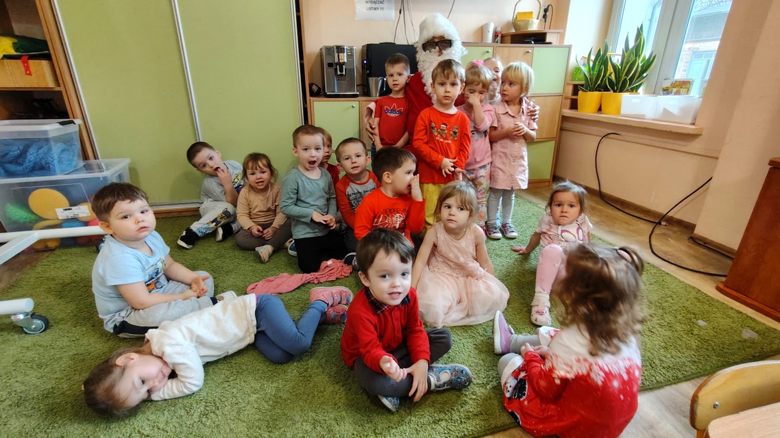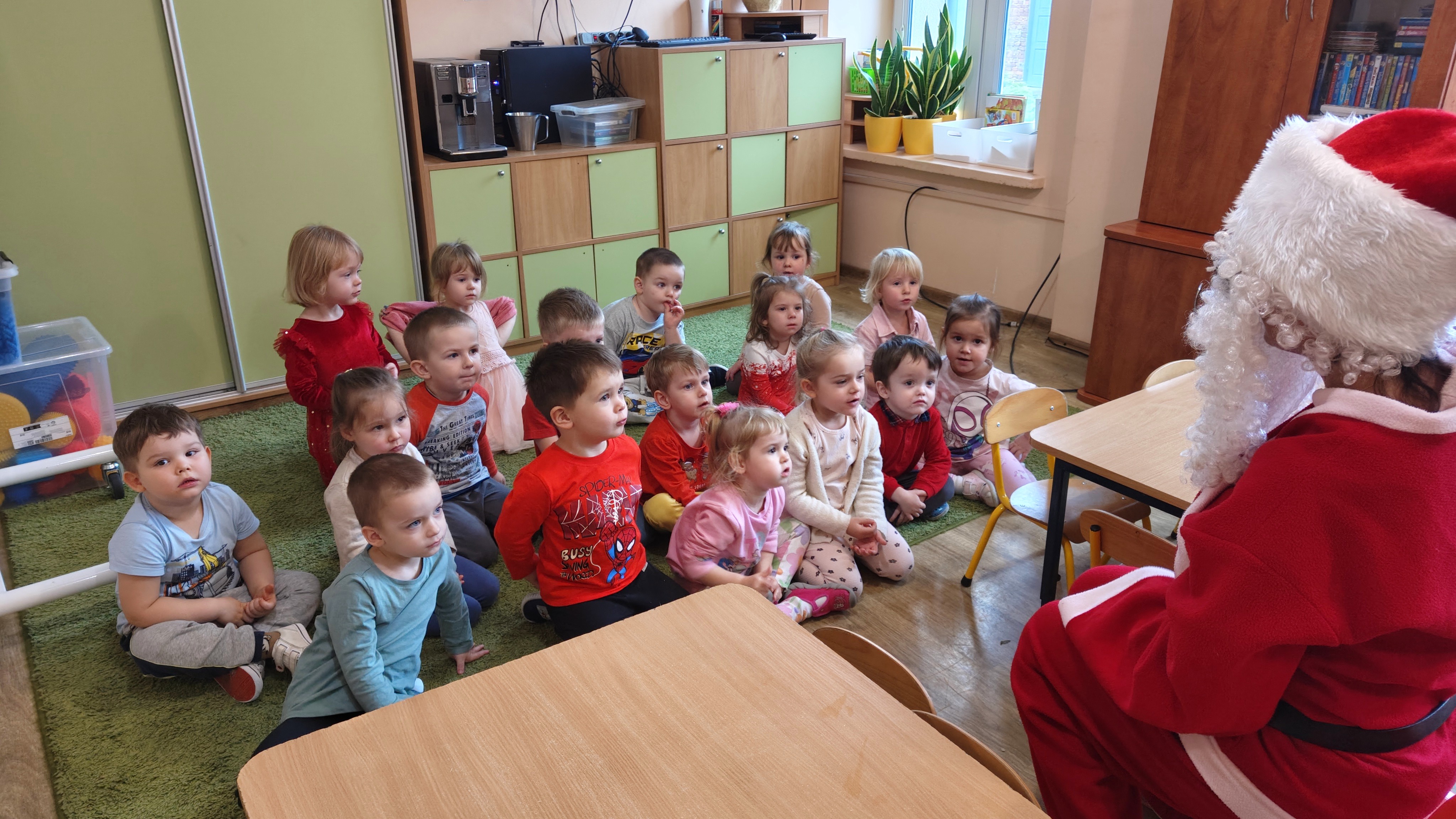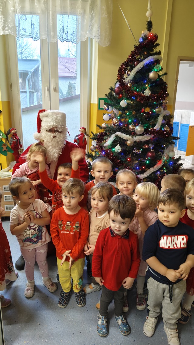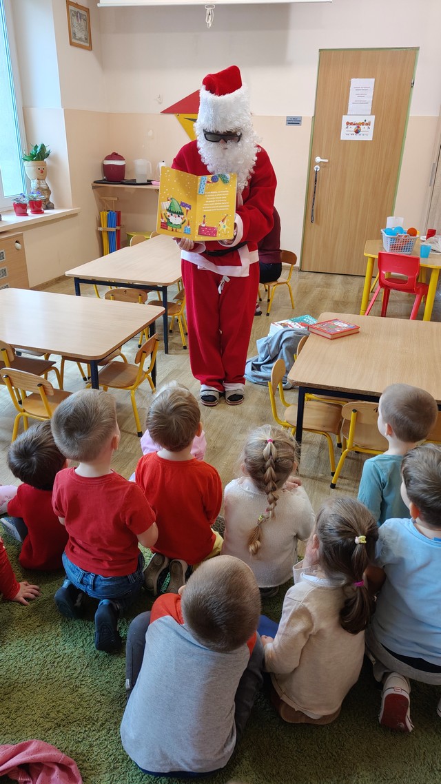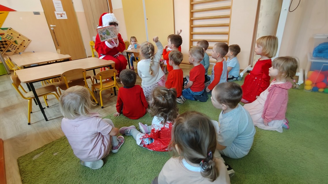 Dzisiejszy dzień był pełen uśmiechów, radości i świątecznej atmosfery! Już od samego rana dzieci witał wyjątkowy gość – Święty Mikołaj. Później Mikołaj przeczytał dzieciom piękną, świąteczną bajkę. Wszyscy słuchali z zapartym tchem, a w sali można było poczuć prawdziwą magię nadchodzących Świąt. Każde dziecko otrzymało książeczkę o tematyce bożonarodzeniowej – to wspaniała pamiątka dzisiejszego dnia i inspiracja do wspólnego czytania w domowym, rodzinnym gronie. Na zakończenie czekała na nas słodka niespodzianka – kolega z grupy poczęstował wszystkich pysznymi pierniczkami, które upiekł wspólnie z mamą. Były przepyszne i pachniały świętami!
