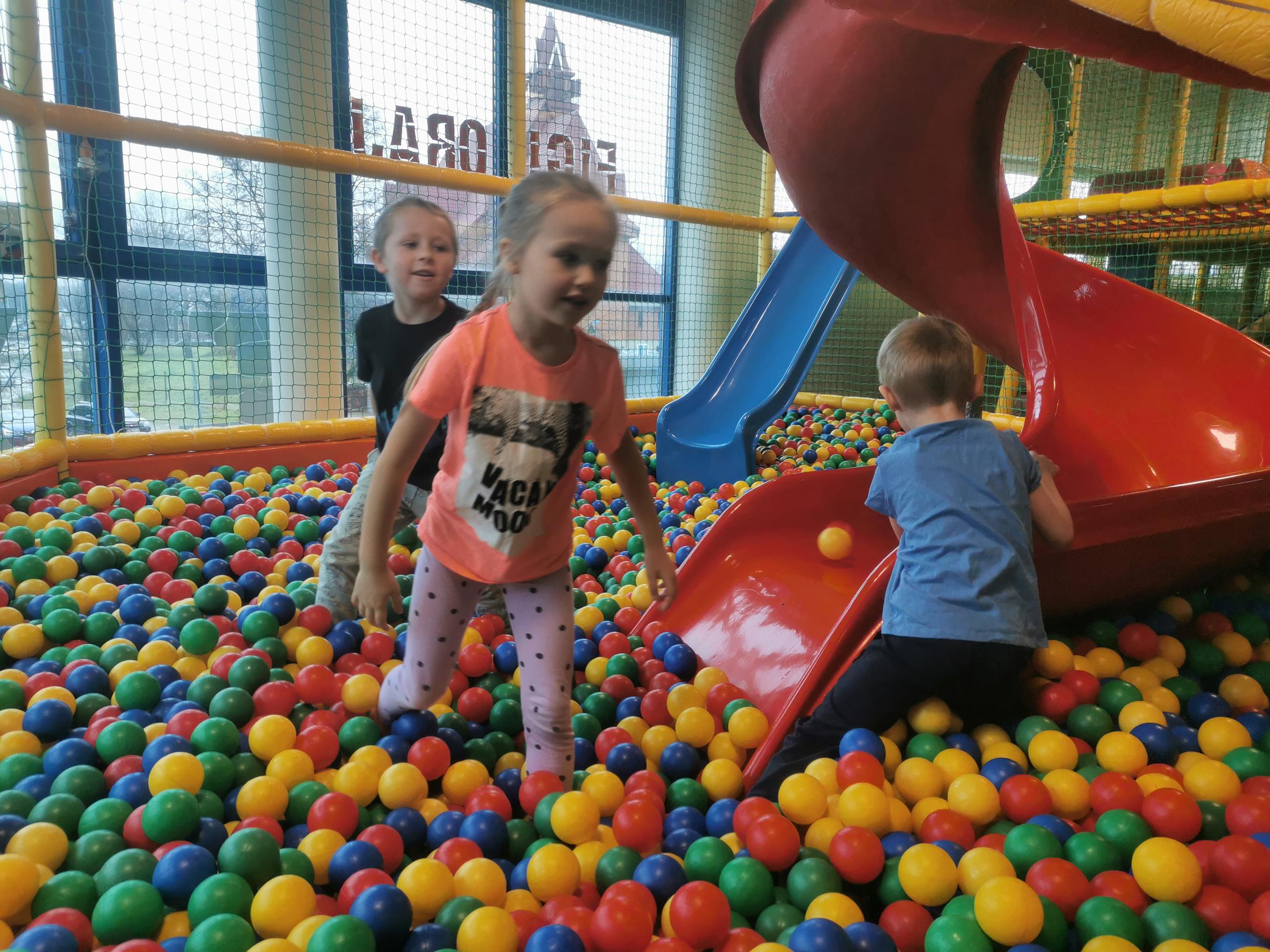 Wszystkich ogarnęła niesamowita fala radości: dzieci biegały, skakały, zjeżdżały na zjeżdżalni, wdrapywały się na konstrukcje, jeździły autami, bawiły się w basenie z piłkami… zabawy nie było końca.