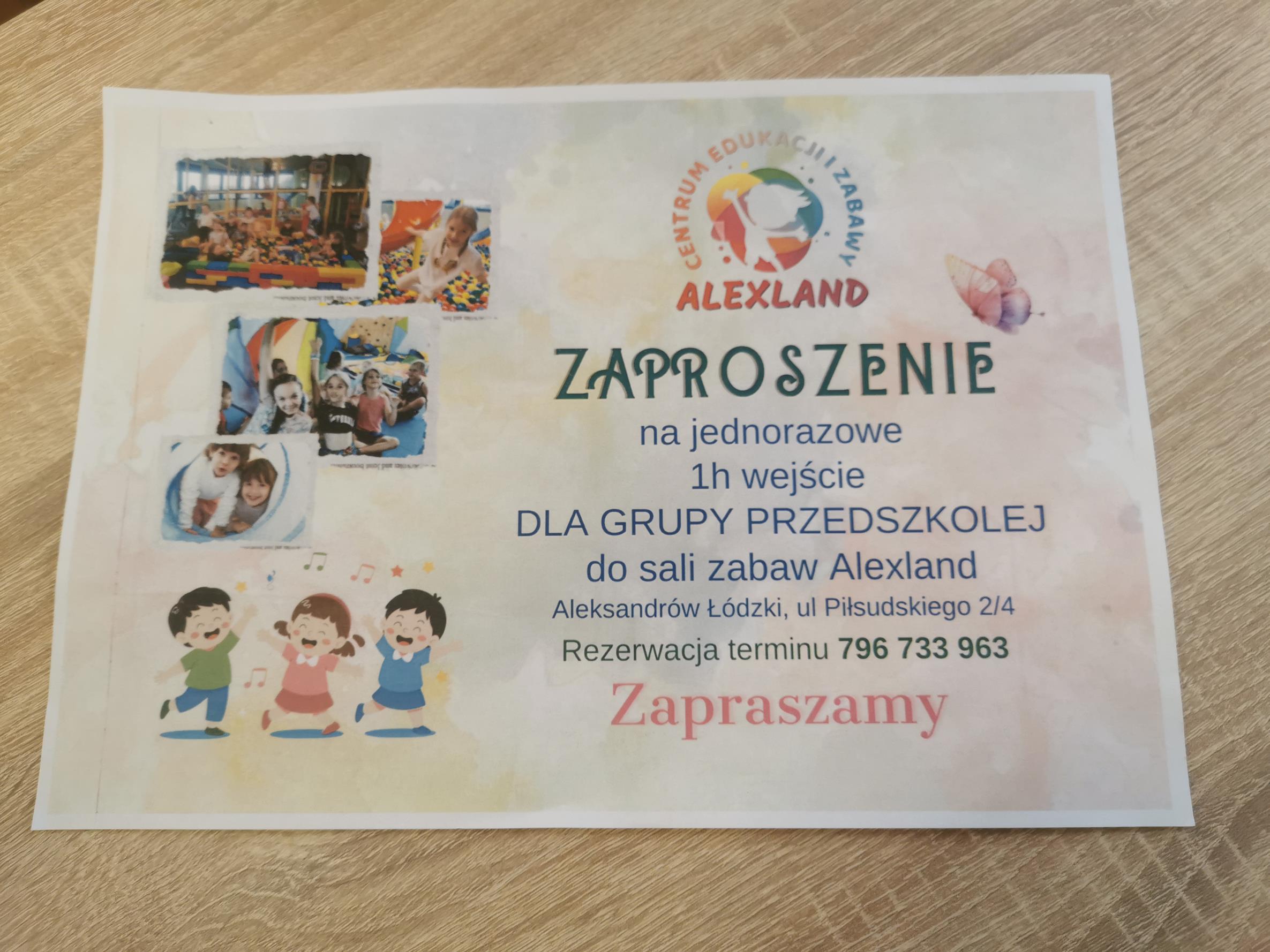 Za zebranie największej ilości karmy dla schroniska "Psiakowo" otrzymaliśmy zaproszenie na darmowe wejście do Alexlandu na 1 godzinę.