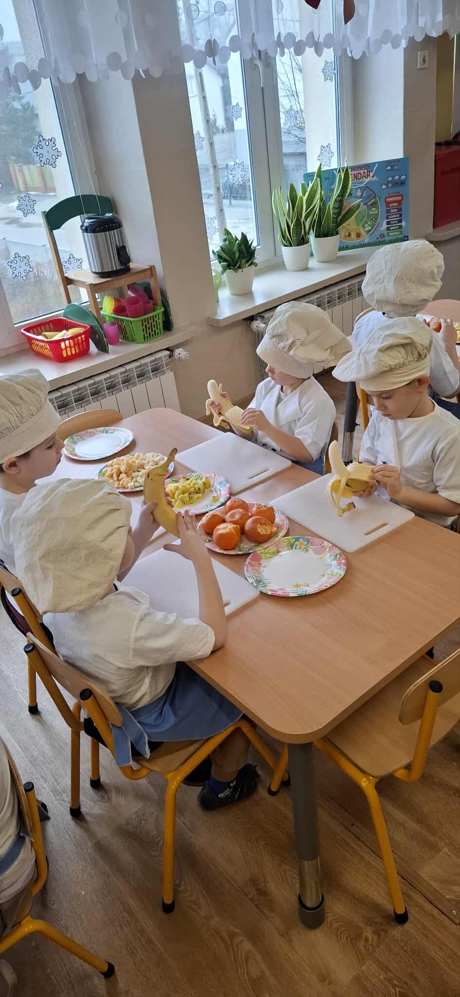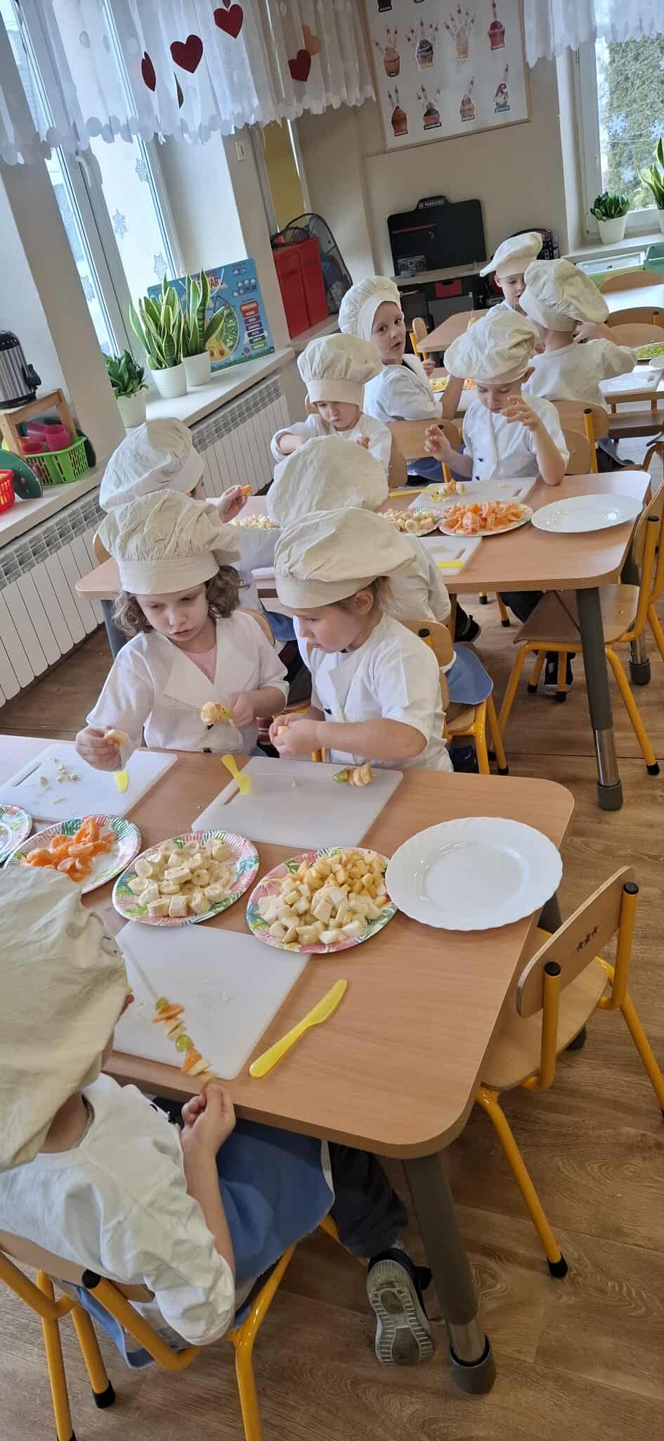 Dzieci pod opieką nauczycieli obierały owoce, kroiły je, nadziewały na patyczki i komponowały zdrowe przekąski pełne witamin.
