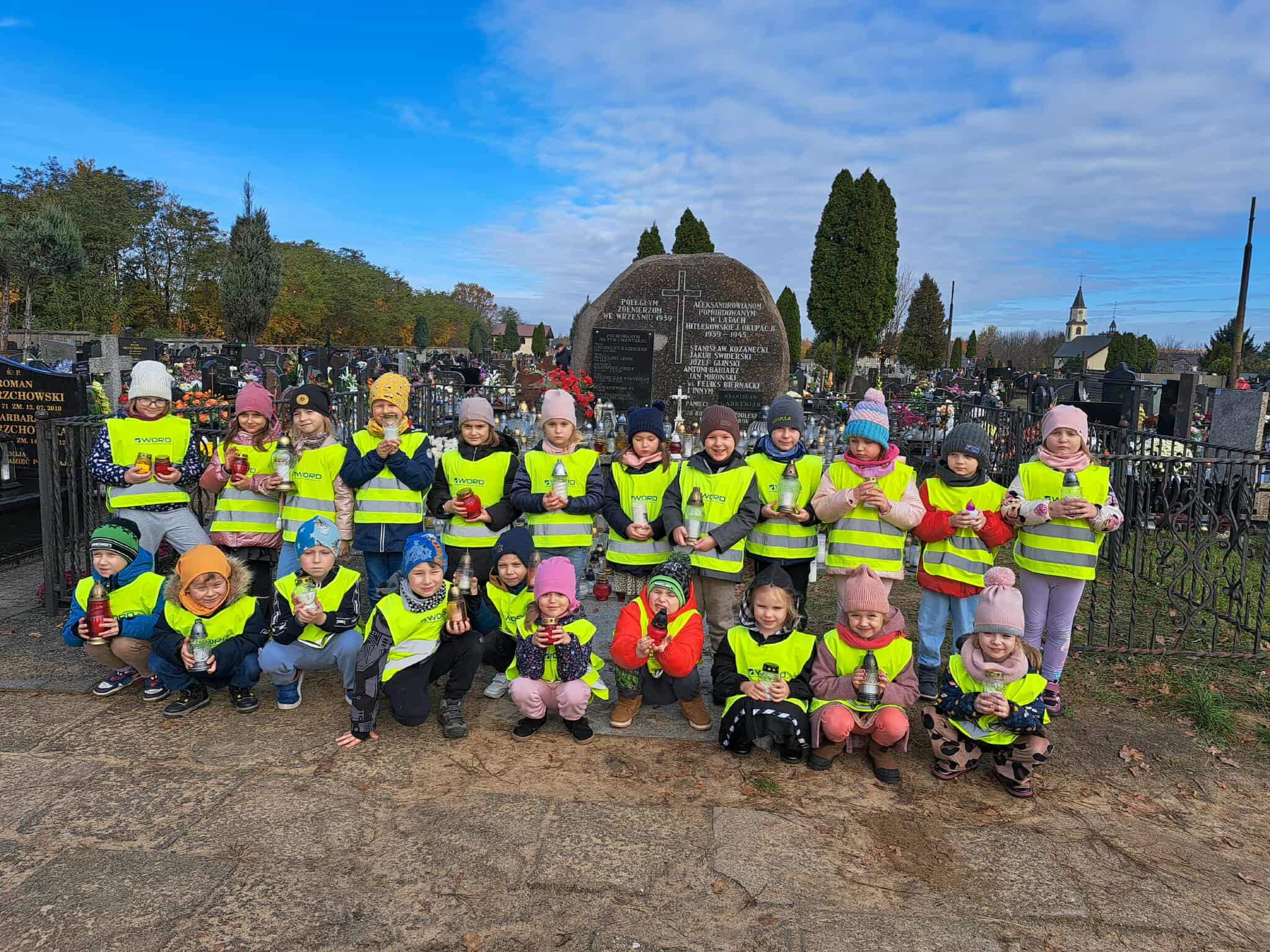 Starszaki zapaliły przyniesione przez siebie do przedszkola znicze na zbiorowej mogile wojennej żołnierzy Wojska Polskiego poległych we wrześniu 1939 r. oraz cywilnych ofiar terroru hitlerowskiego.