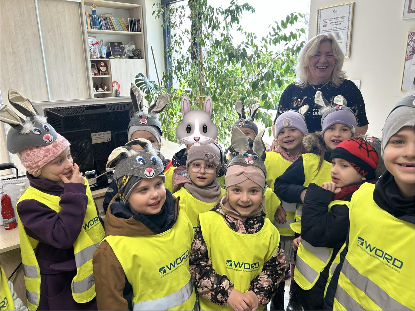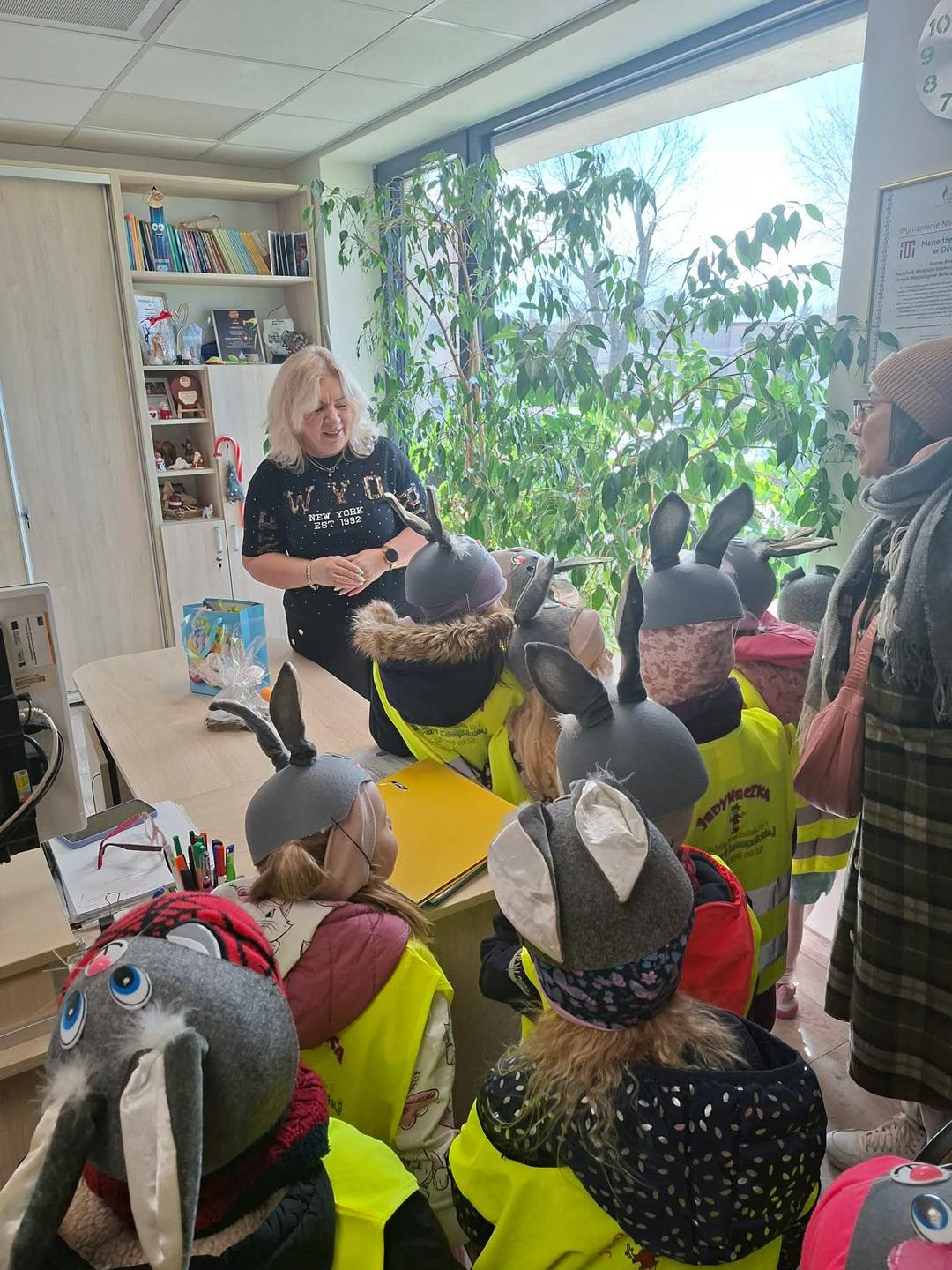 Nasze Zajączki nie zapomniały także o wizycie u Pani Naczelnik Wydziału Edukacji, Kultury i Sportu - Pani Hannie Beda. Spotkanie przebiegło w niezwykle ciepłej i radosnej atmosferze – nie zabrakło uśmiechów, serdecznych rozmów i świątecznych życzeń.