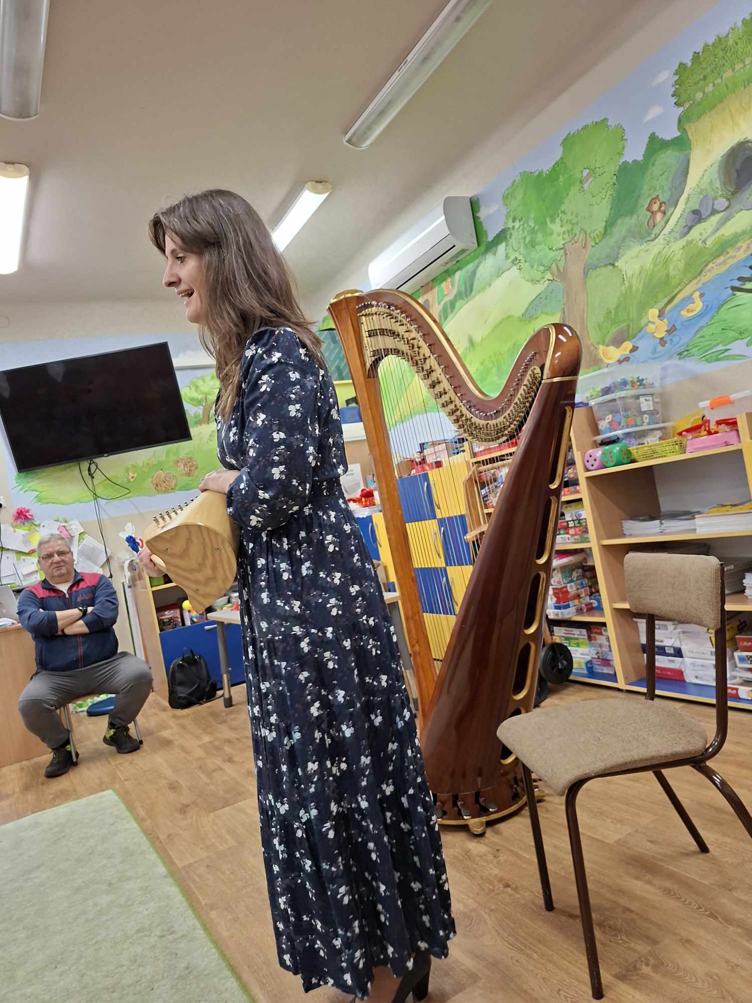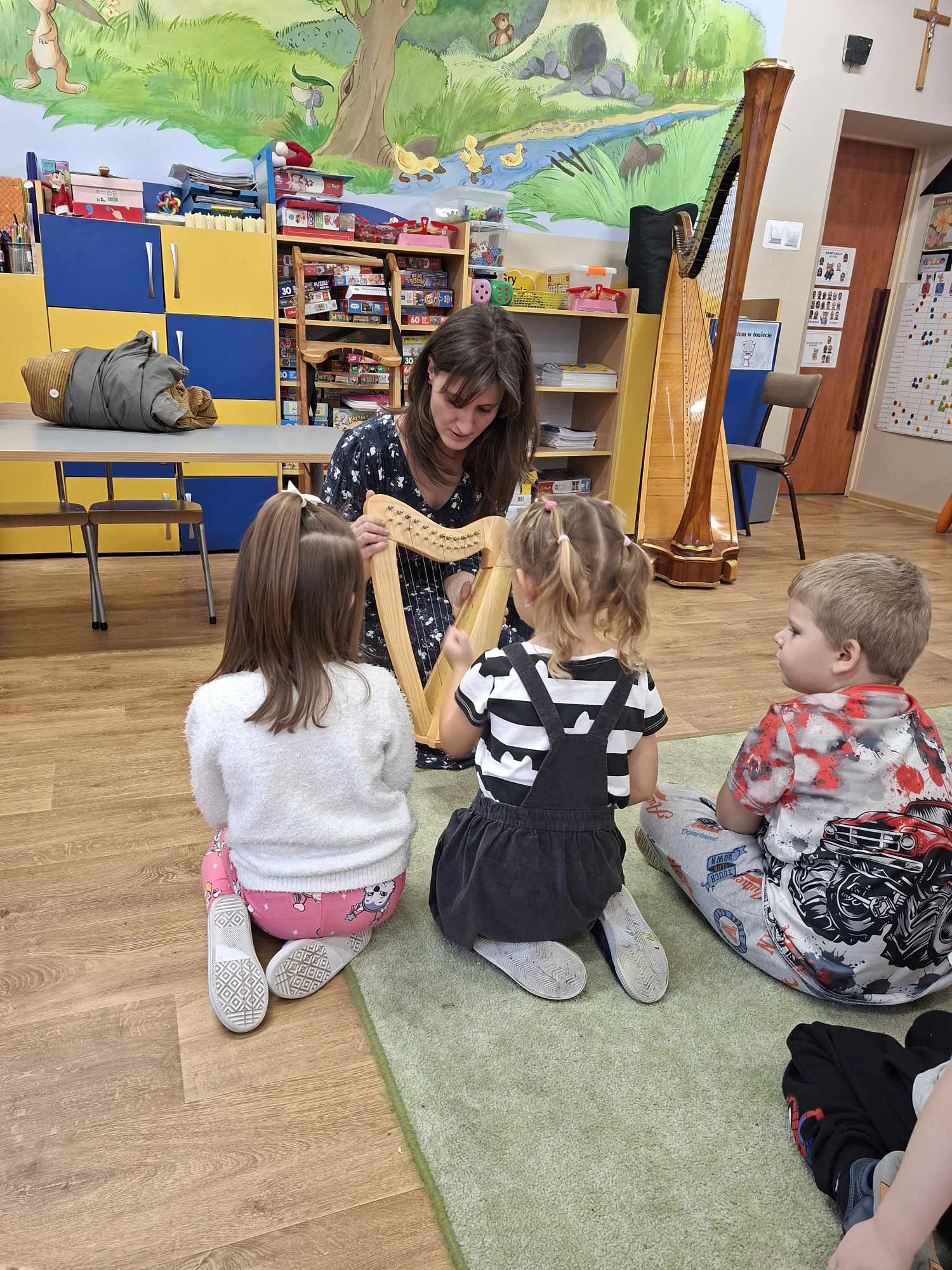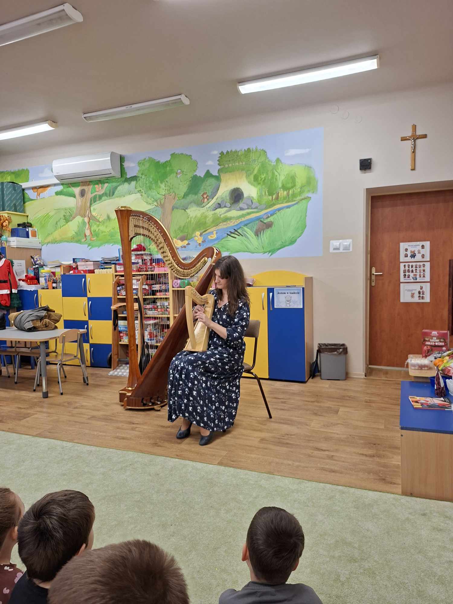 Podczas kameralnego mini-koncertu przedszkolaki wsłuchiwały się w magiczne dźwięki harfy, a także poznawały jej budowę, sposób gry oraz pochodzenie.