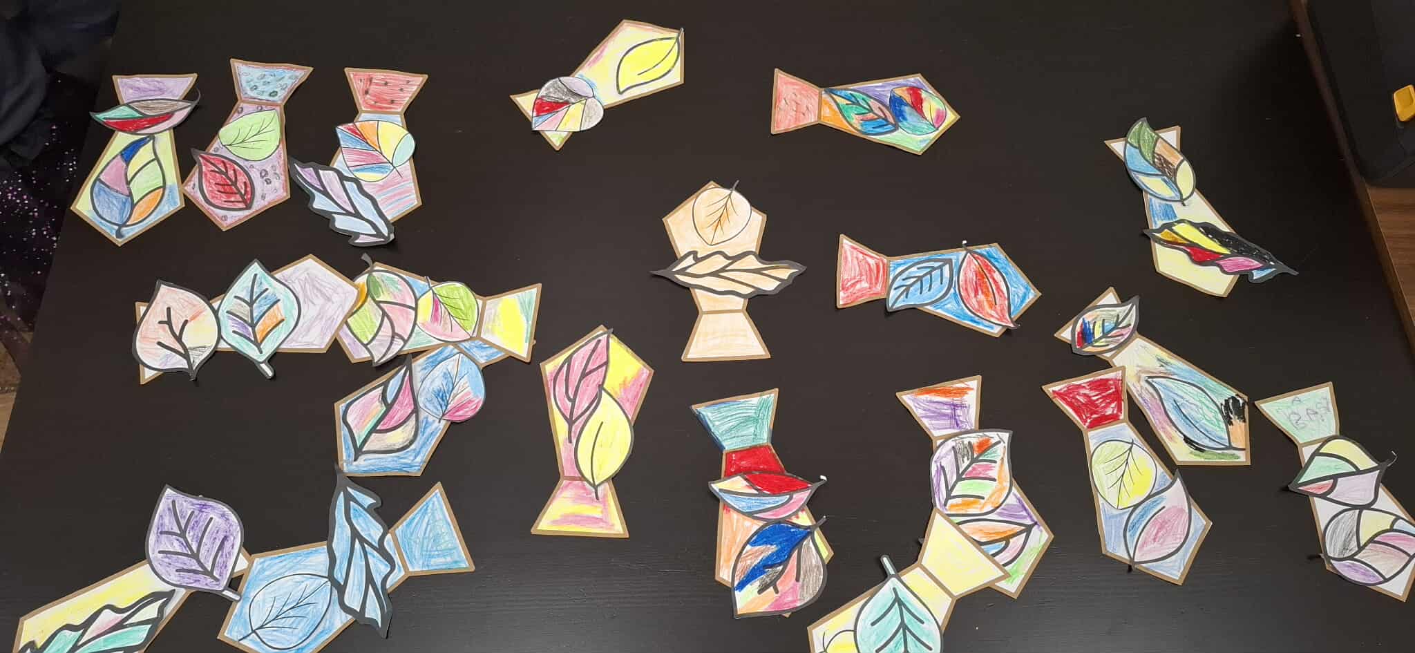 Na ilustracjach rozpoznawały zwierzęta, rośliny charakterystyczne dla tej barwnej pory roku, a na koniec wykonały pracę plastyczną - jesienne krawaty.