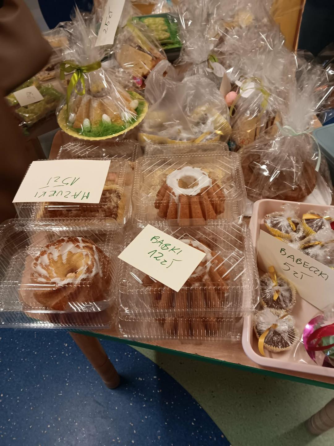Na odwiedzających czekały przepyszne, pięknie pachnące wypieki przygotowane przez nasze niezwykle utalentowane Panie kucharki – zachwycające mazurki i baby wielkanocne, które już drugi rok z rzędu cieszą się ogromnym powodzeniem. Nie zabrakło także słodkości przygotowanych przez zdolnych i zaangażowanych Rodziców – nasze stoisko kusiło smakiem i estetyką wykonania.