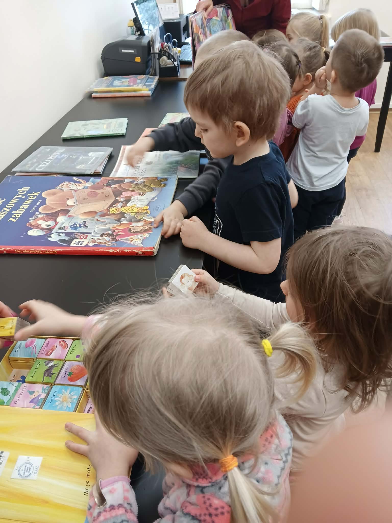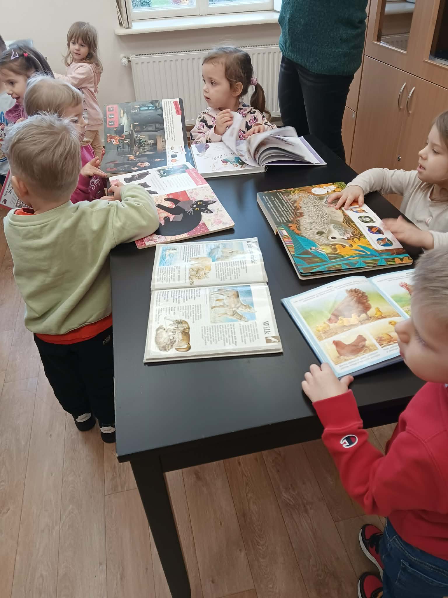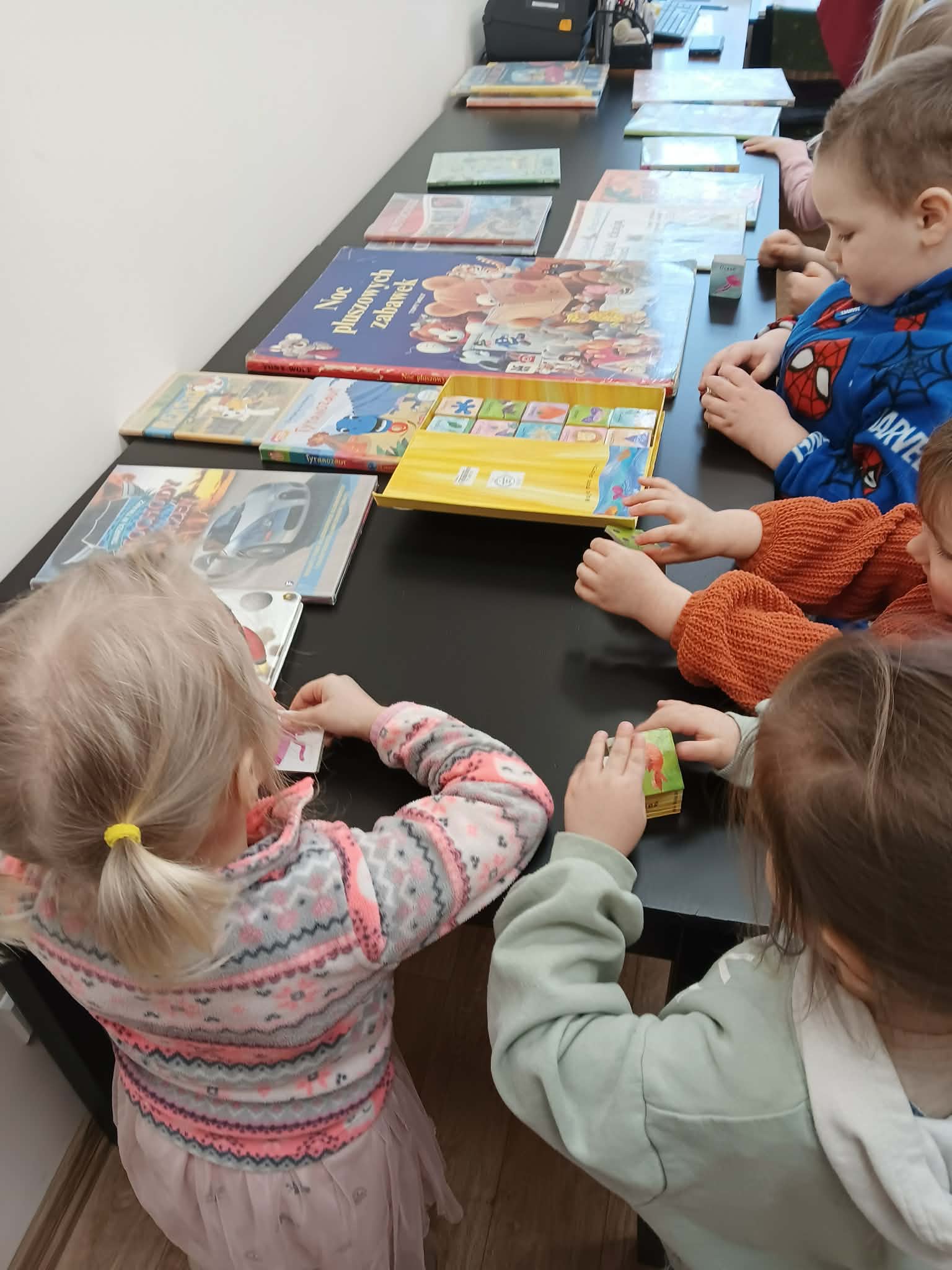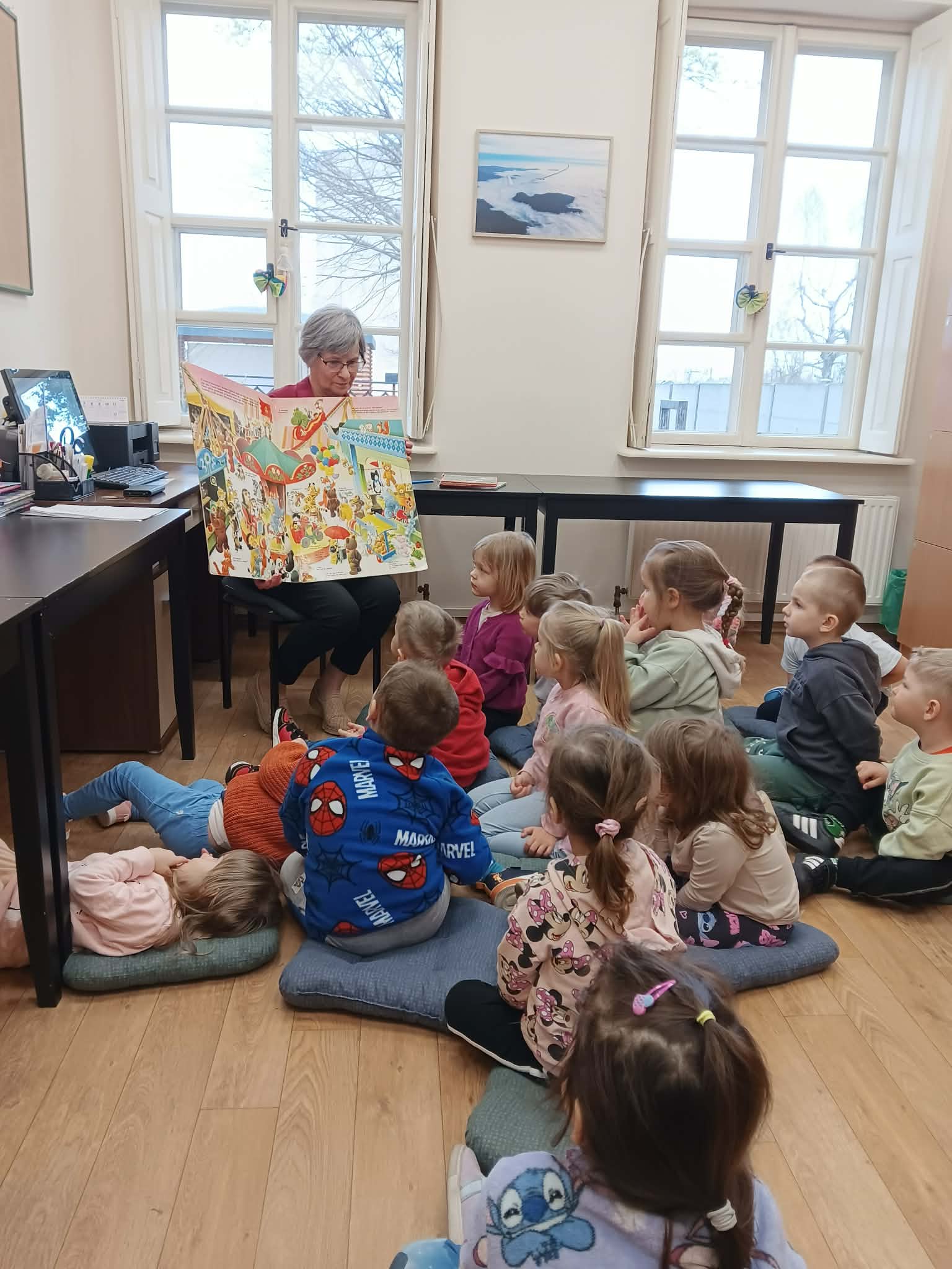 Dla Żabek była to pierwsza wizyta w Publicznej Bibliotece. Maluchy słuchały opowiadania czytanego przez panią bibliotekarkę pt: "O wilku, który nie lubił czytać", dowiedziały się jak zostać czytelnikami, i jak należy traktować książki. Oczywiście najprzyjemniejsze były chwile spędzone na ich przeglądaniu.