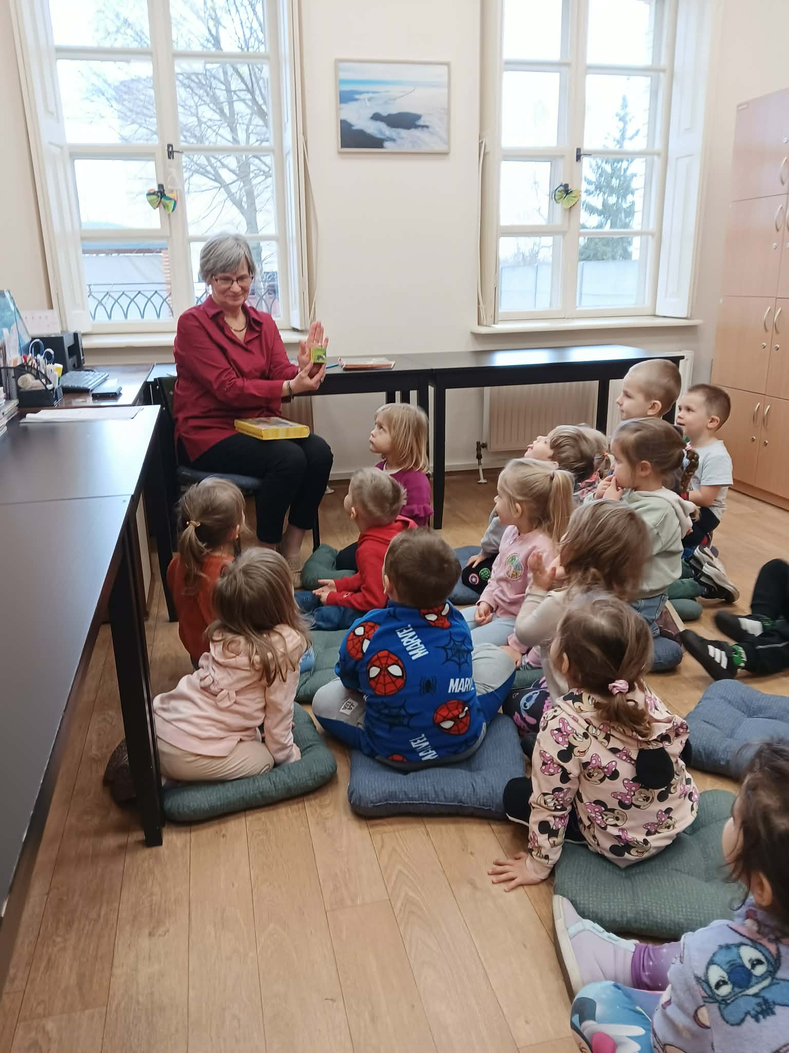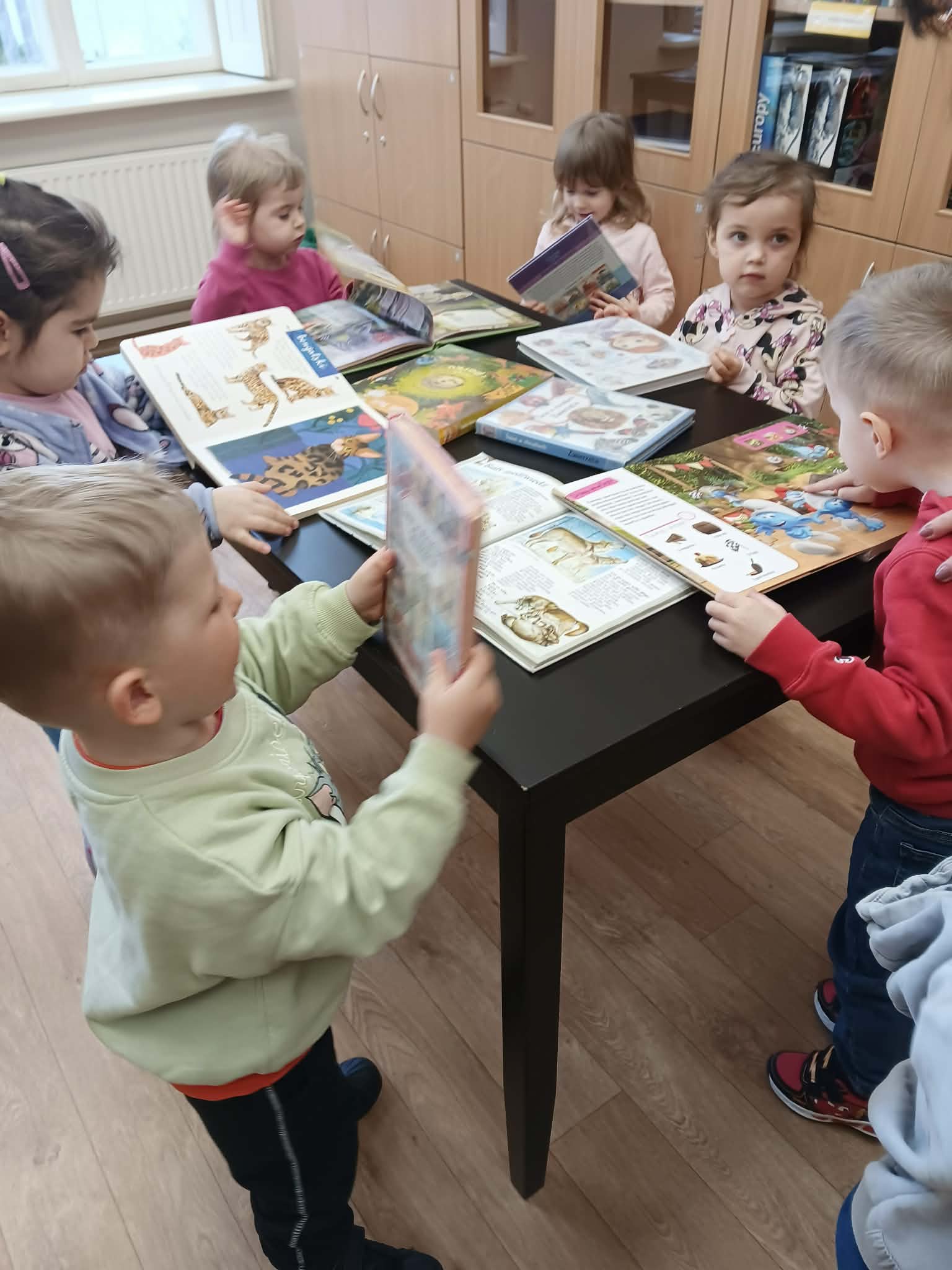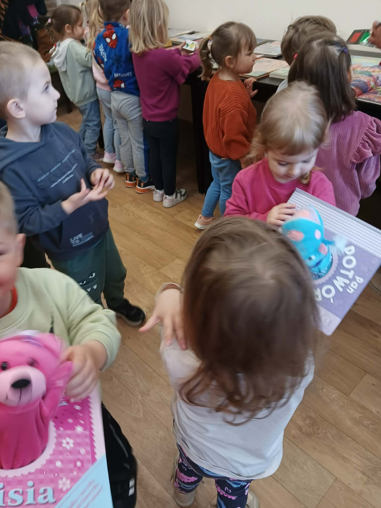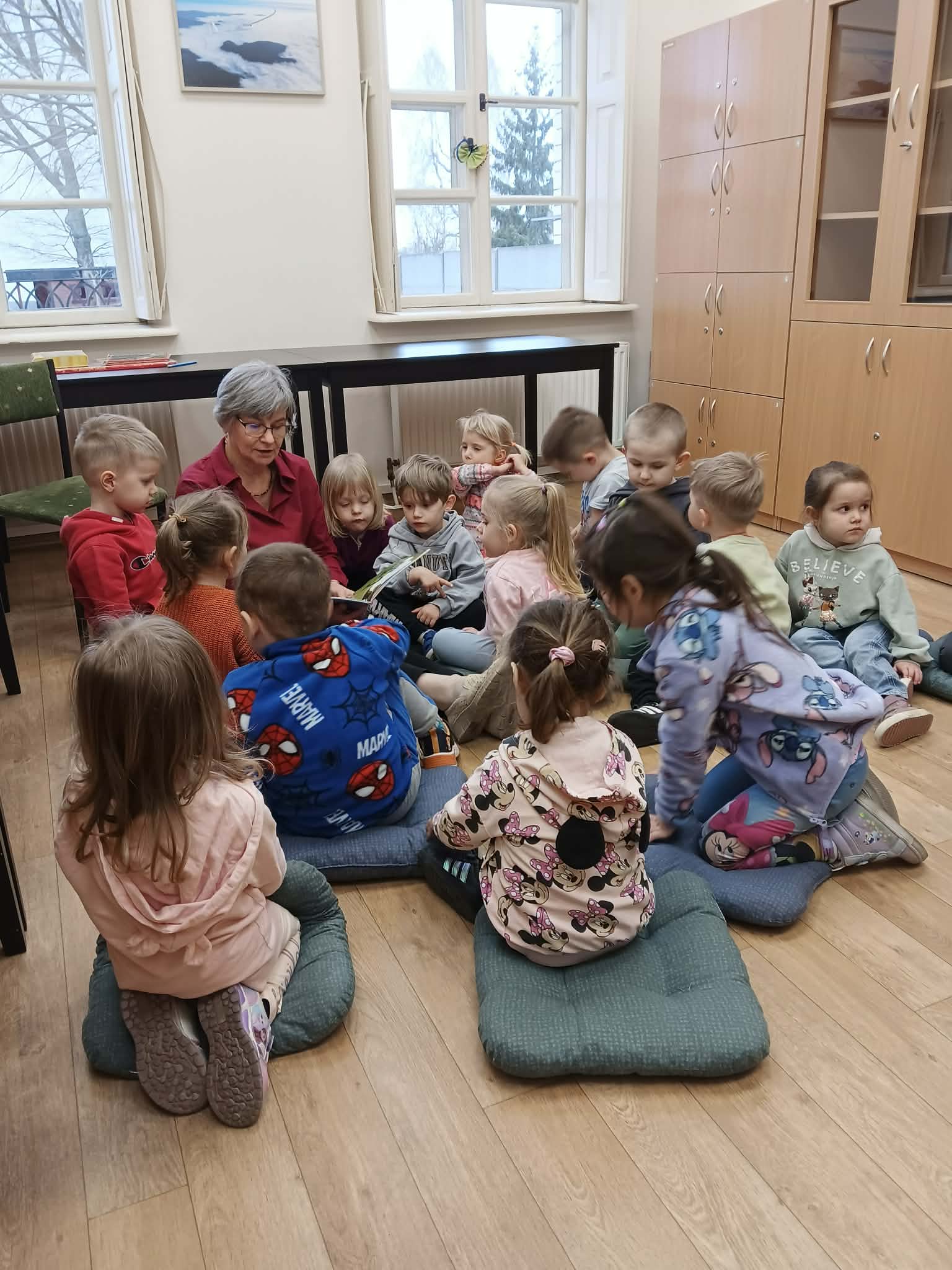 Dla Żabek była to pierwsza wizyta w Publicznej Bibliotece. Maluchy słuchały opowiadania czytanego przez panią bibliotekarkę pt: "O wilku, który nie lubił czytać", dowiedziały się jak zostać czytelnikami, i jak należy traktować książki. Oczywiście najprzyjemniejsze były chwile spędzone na ich przeglądaniu.